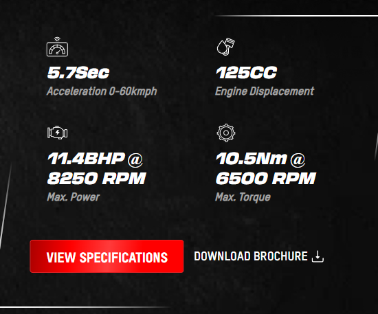 इस बाइक में 124.7cc का एयर-कूल्ड, 4-स्ट्रोक इंजन दिया गया है, जो लगभग 11.4 BHP की पावर और 10.5 Nm का टॉर्क देता है।